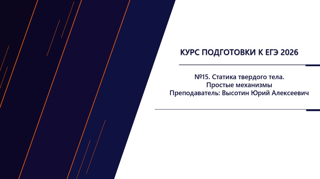 КУРС ПОДГОТОВКИ К ЕГЭ 2026№15. Статика твердого тела.