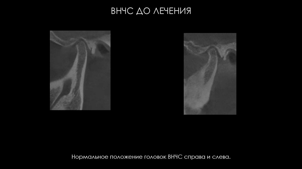 ВНЧС ДО ЛЕЧЕНИЯНормальное положение головок ВНЧС справа и слева.