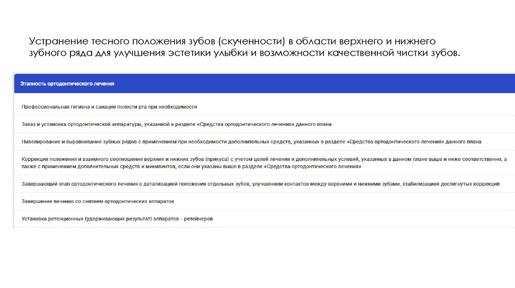 ПЛАН ОРТОДОНТИЧЕСКОГО ЛЕЧЕНИЯПлан лечения.