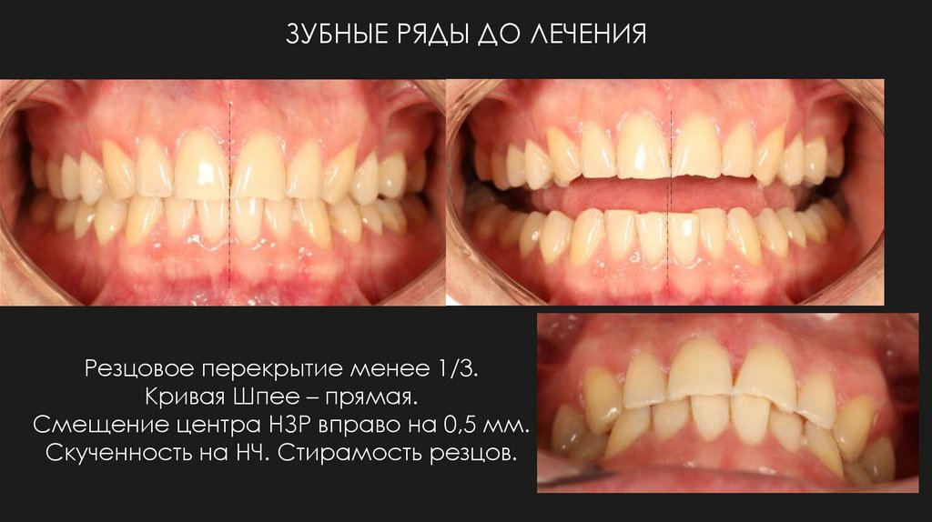 ЗУБНЫЕ РЯДЫ ДО ЛЕЧЕНИЯРезцовое перекрытие менее 1/3.