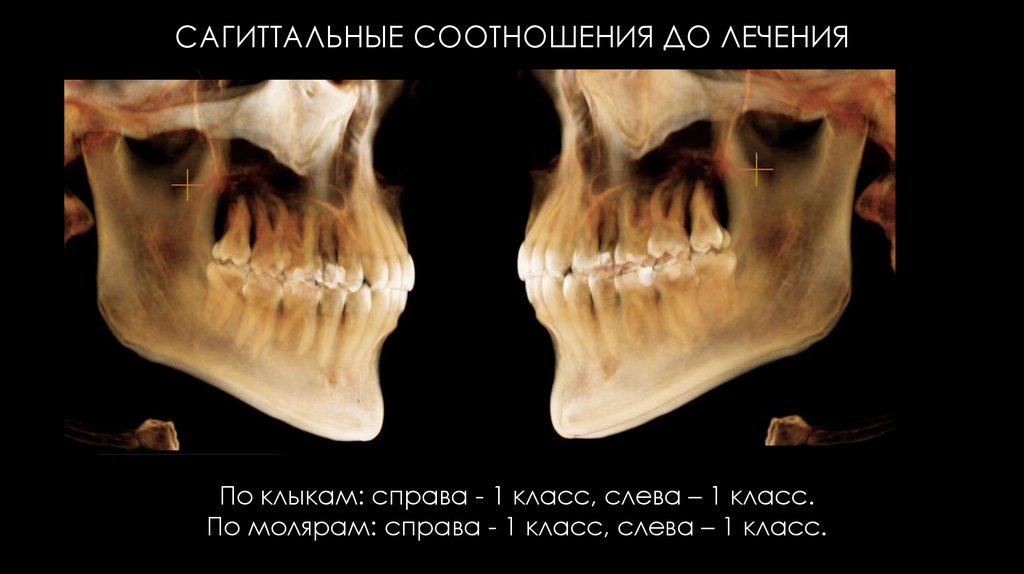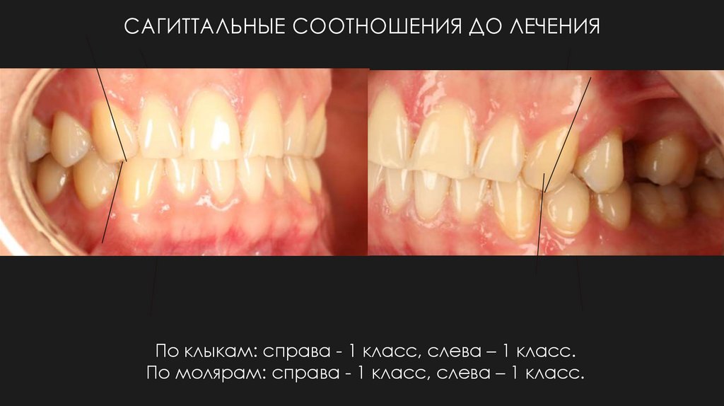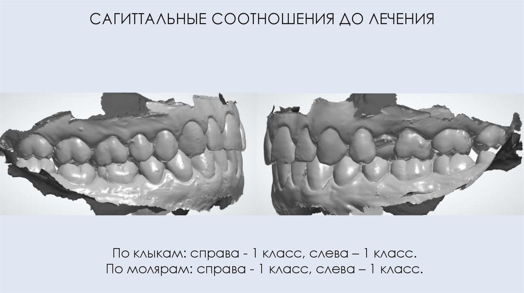 САГИТТАЛЬНЫЕ СООТНОШЕНИЯ ДО ЛЕЧЕНИЯПо клыкам: справа - 1 класс, слева – 1 класс.