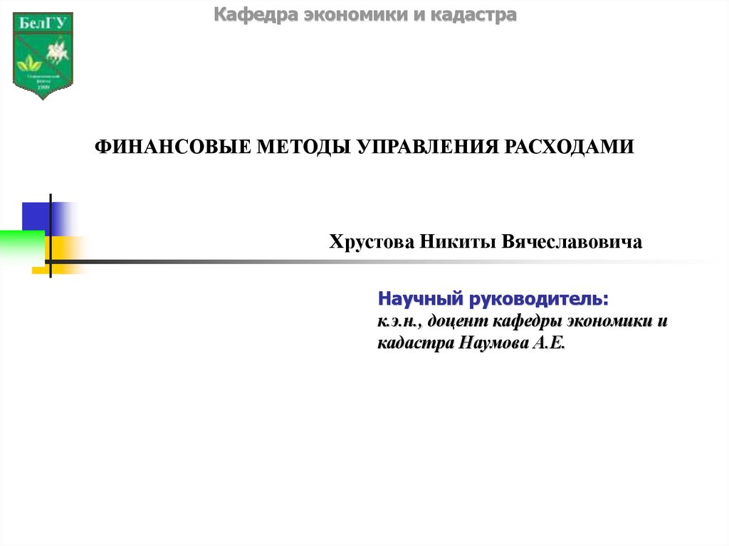 ФИНАНСОВЫЕ МЕТОДЫ УПРАВЛЕНИЯ РАСХОДАМИ