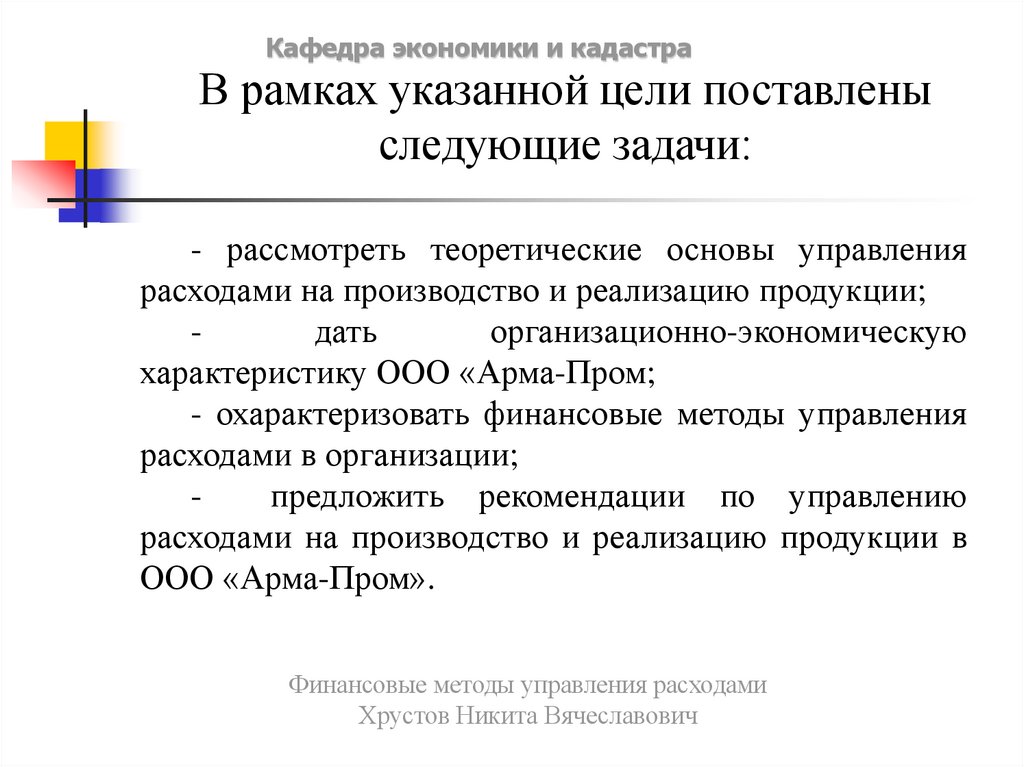 Кафедра экономики и кадастраВ рамках указанной цели поставлены