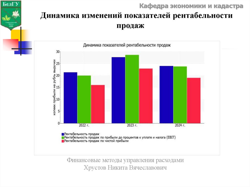Кафедра экономики и кадастраДинамика изменений показателей рентабельности