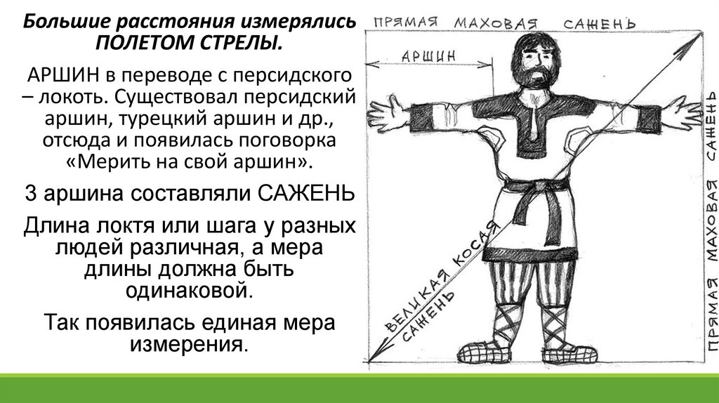 Большие расстояния измерялисьПОЛЕТОМ СТРЕЛЫ.