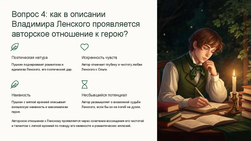 Вопрос 4: как в описанииВладимира Ленского проявляется