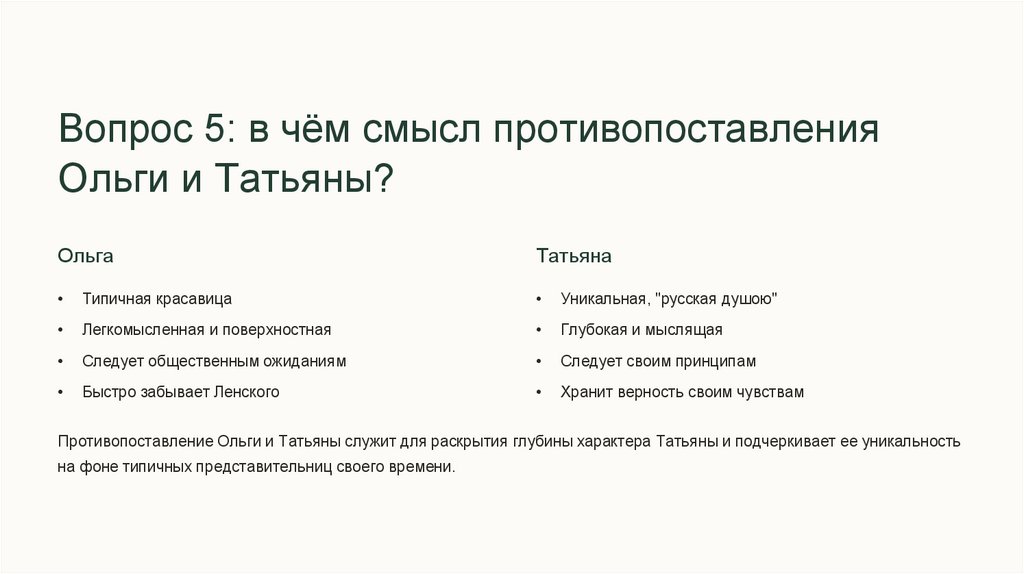 Вопрос 5: в чём смысл противопоставленияОльги и Татьяны?