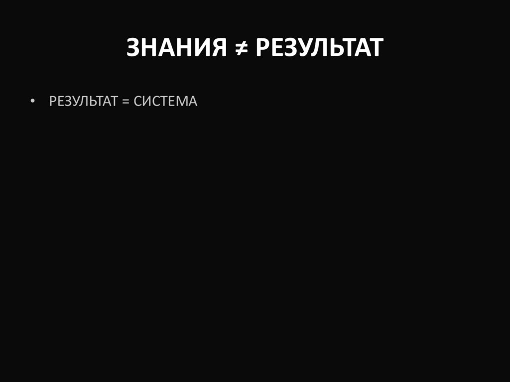 ЗНАНИЯ ≠ РЕЗУЛЬТАТ• РЕЗУЛЬТАТ = СИСТЕМА