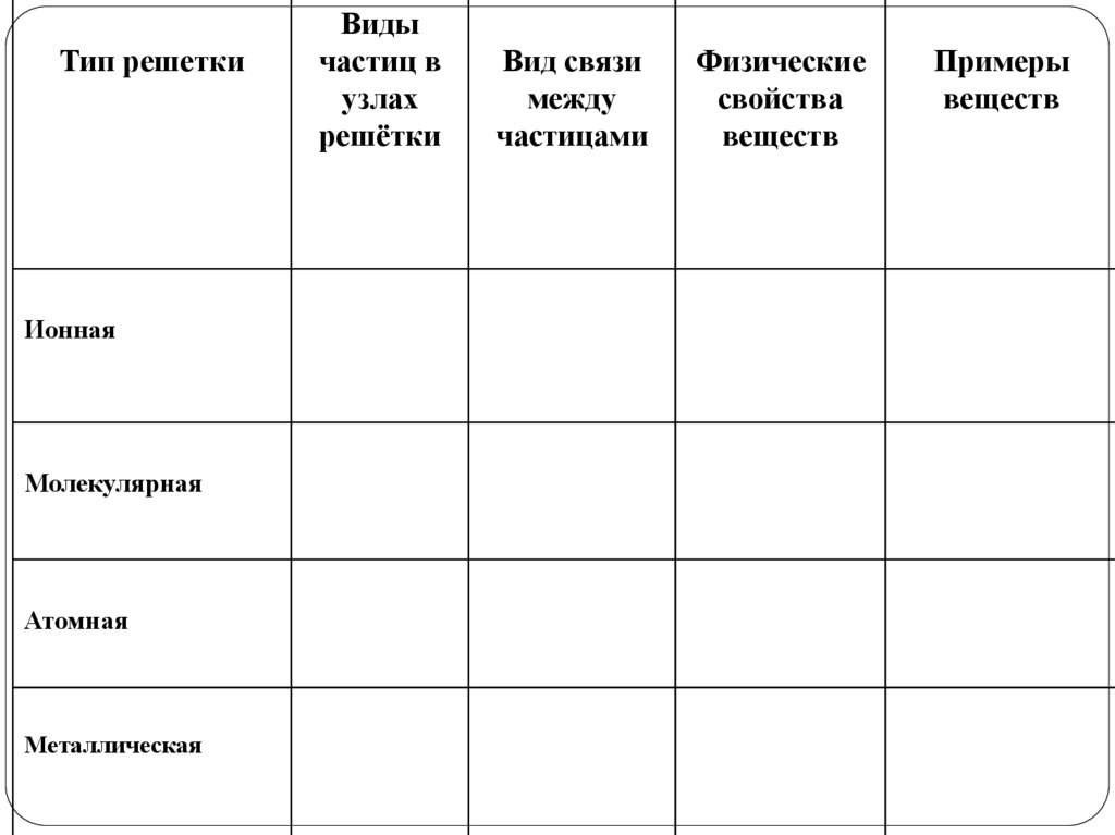 Кристаллические решётки веществ - этоупорядоченное расположение частиц