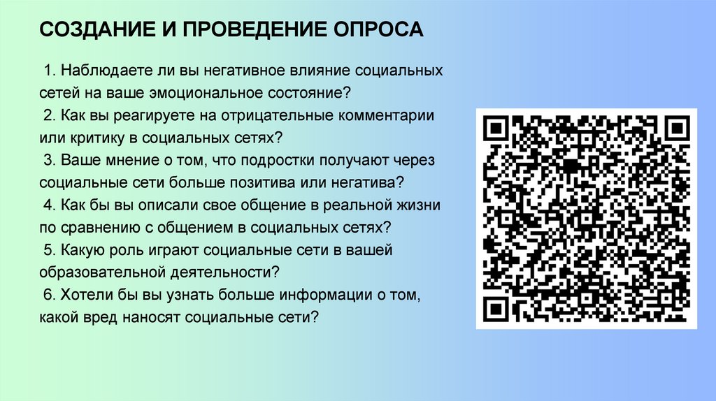 СОЗДАНИЕ И ПРОВЕДЕНИЕ ОПРОСА1. Наблюдаете ли вы негативное влияние социальных