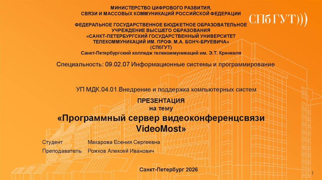 Макарова Есения Сергеевна. Программный сервер видеоконференцсвязи VideoMostО программном обеспечении