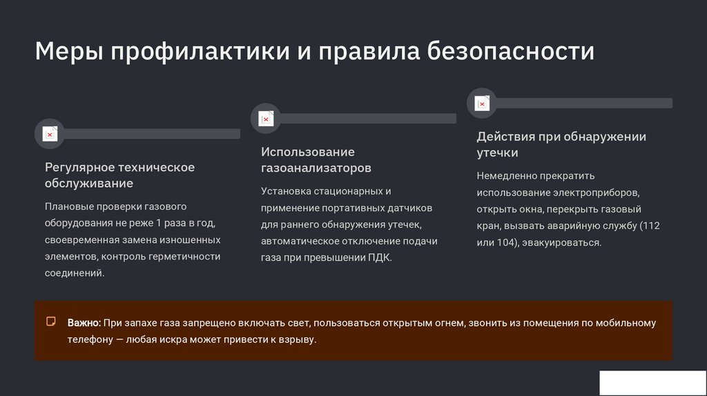 Важно: При запахе газа запрещено включать свет, пользоваться открытым огнем, звонить из помещения по мобильному