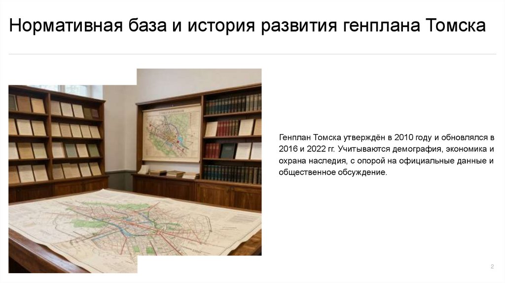 Нормативная база и история развития генплана ТомскаГенплан Томска утверждён в 2010 году и обновлялся в