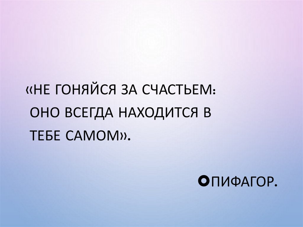 «НЕ ГОНЯЙСЯ ЗА СЧАСТЬЕМ:ОНО ВСЕГДА НАХОДИТСЯ В