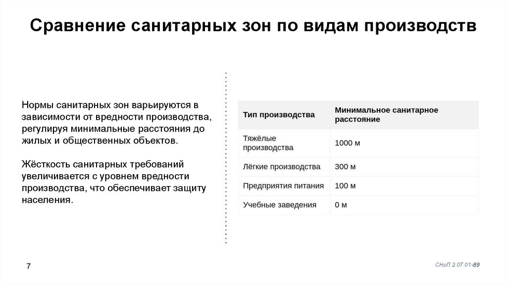 Сравнение санитарных зон по видам производствНормы санитарных зон варьируются в