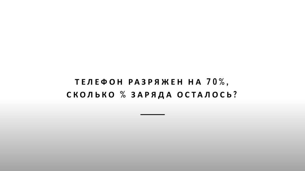 Т ЕЛ ЕФОН РАЗР Я ЖЕН Н А 7 0 % ,С КОЛ Ь КО % З А Р Я Д А О С ТА Л О С Ь ?