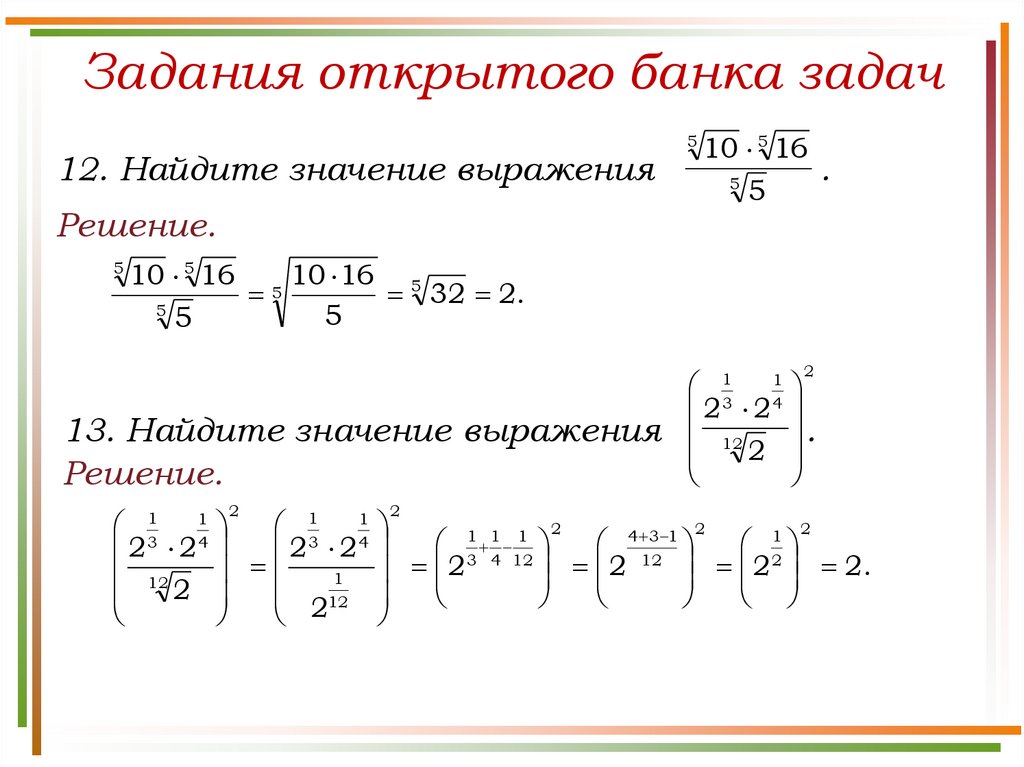 Задания открытого банка задач12. Найдите значение выражения