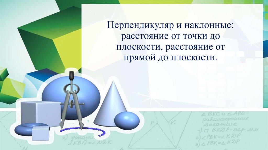 1. Перпендикуляр и наклонные: расстояние от точки до плоскости, расстояние от прямой до плоскости.