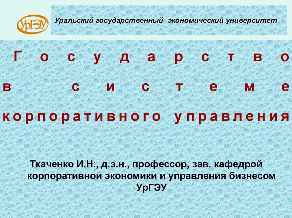 Ткаченко И.Н., д.э.н., профессор, зав. кафедрой