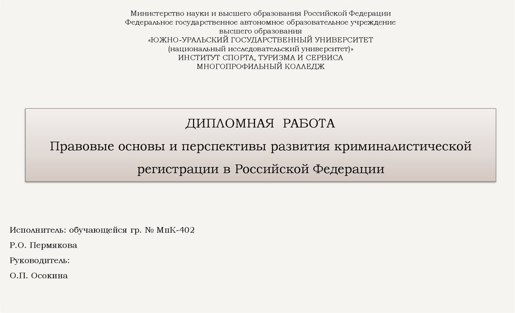ЗАКОНОДАТЕЛЬНАЯ БАЗАКРИМИНАЛИСТИЧЕСКОЙ РЕГИСТРАЦИИ