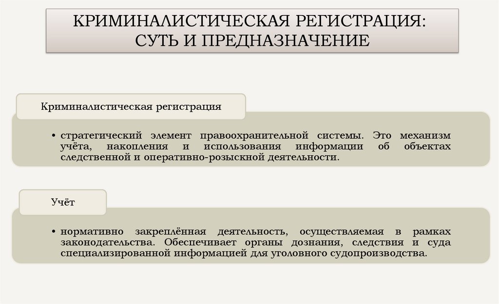 КРИМИНАЛИСТИЧЕСКАЯ РЕГИСТРАЦИЯ:СУТЬ И ПРЕДНАЗНАЧЕНИЕ