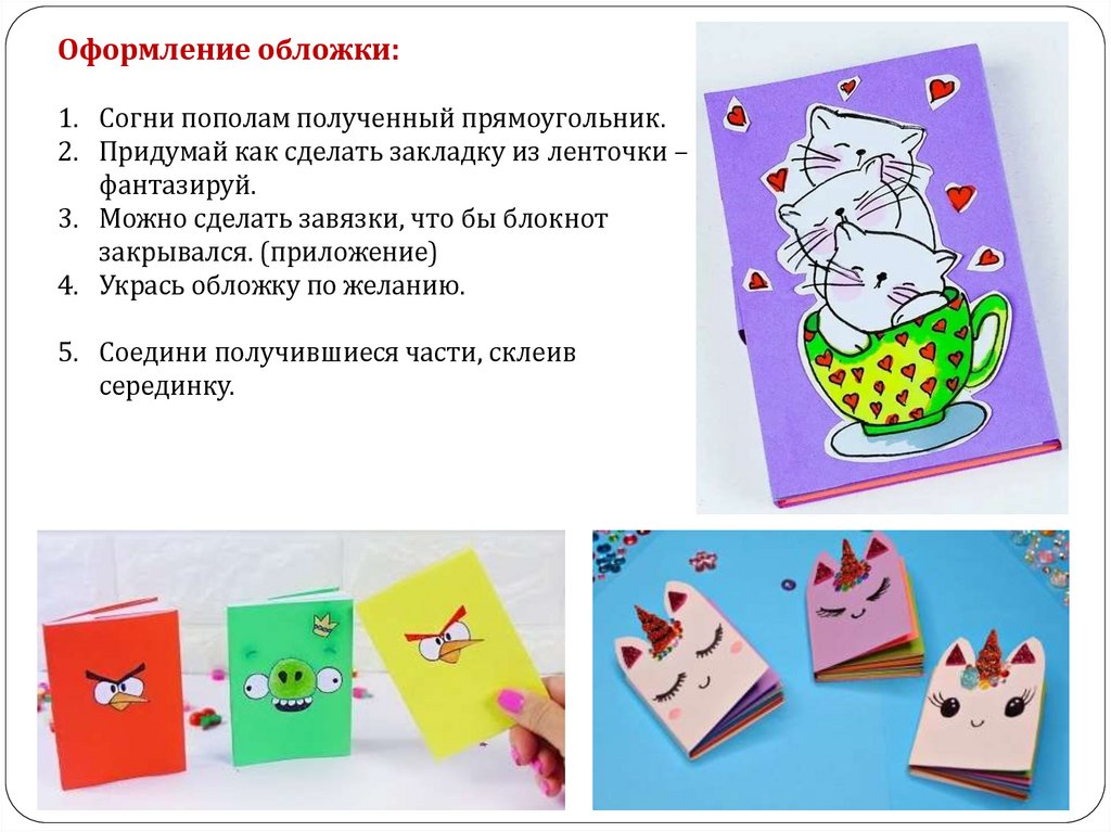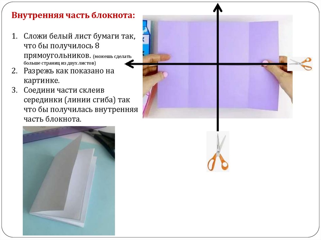 Внутренняя часть блокнота:1. Сложи белый лист бумаги так,
