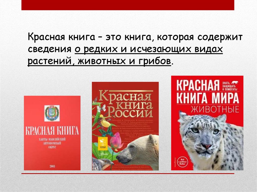 Красная книга – это книга, которая содержитсведения о редких и исчезающих видах