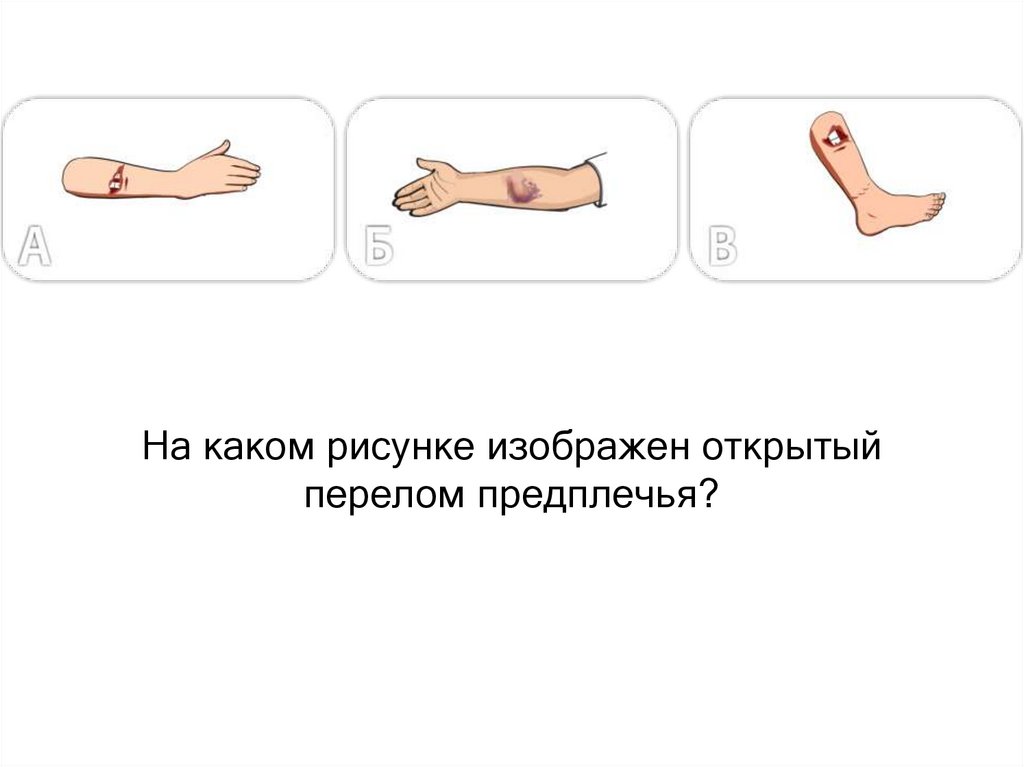 На каком рисунке изображен открытыйперелом предплечья?