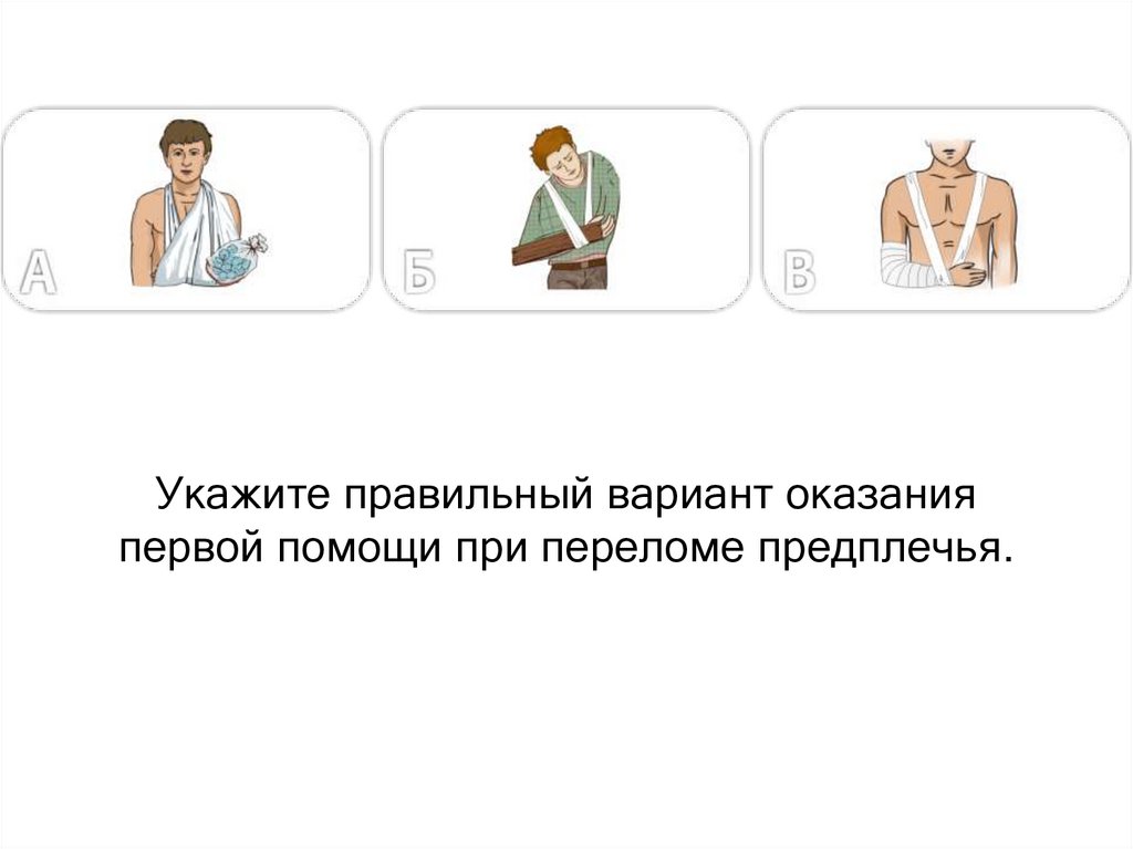 Укажите правильный вариант оказанияпервой помощи при переломе предплечья.