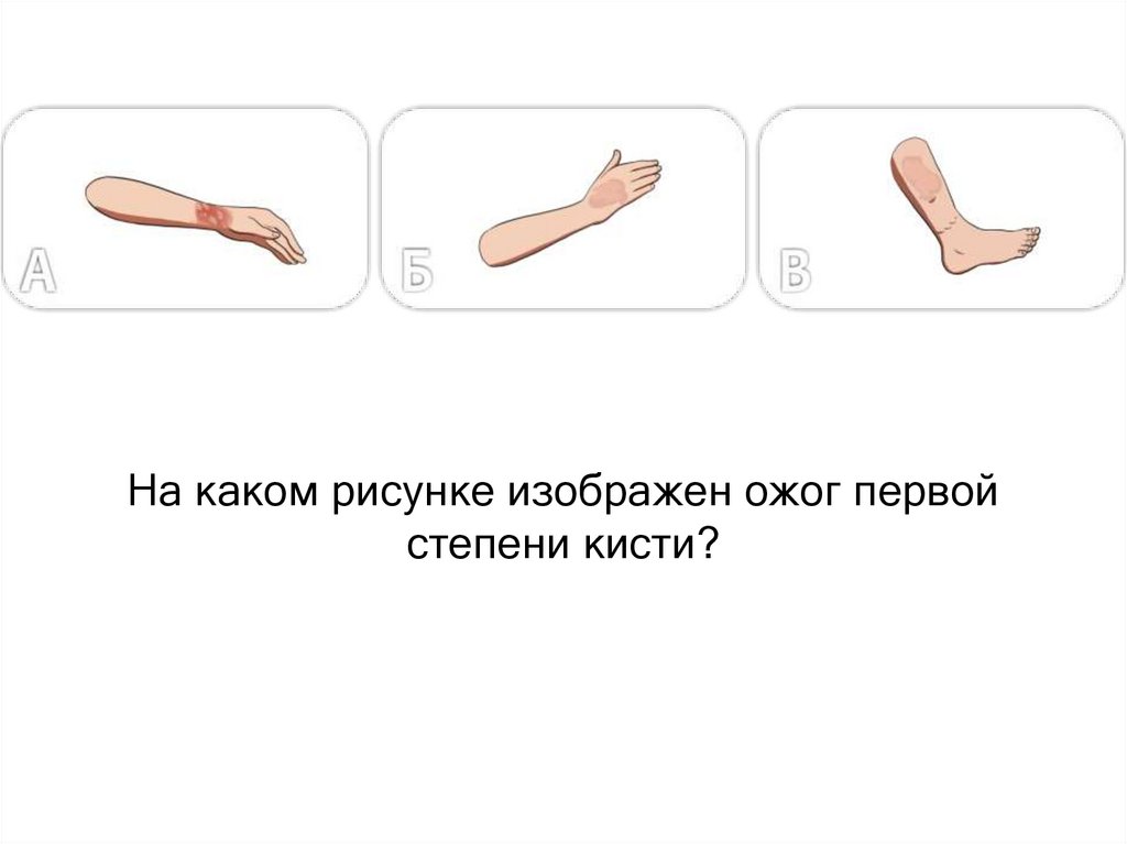 На каком рисунке изображен ожог первойстепени кисти?