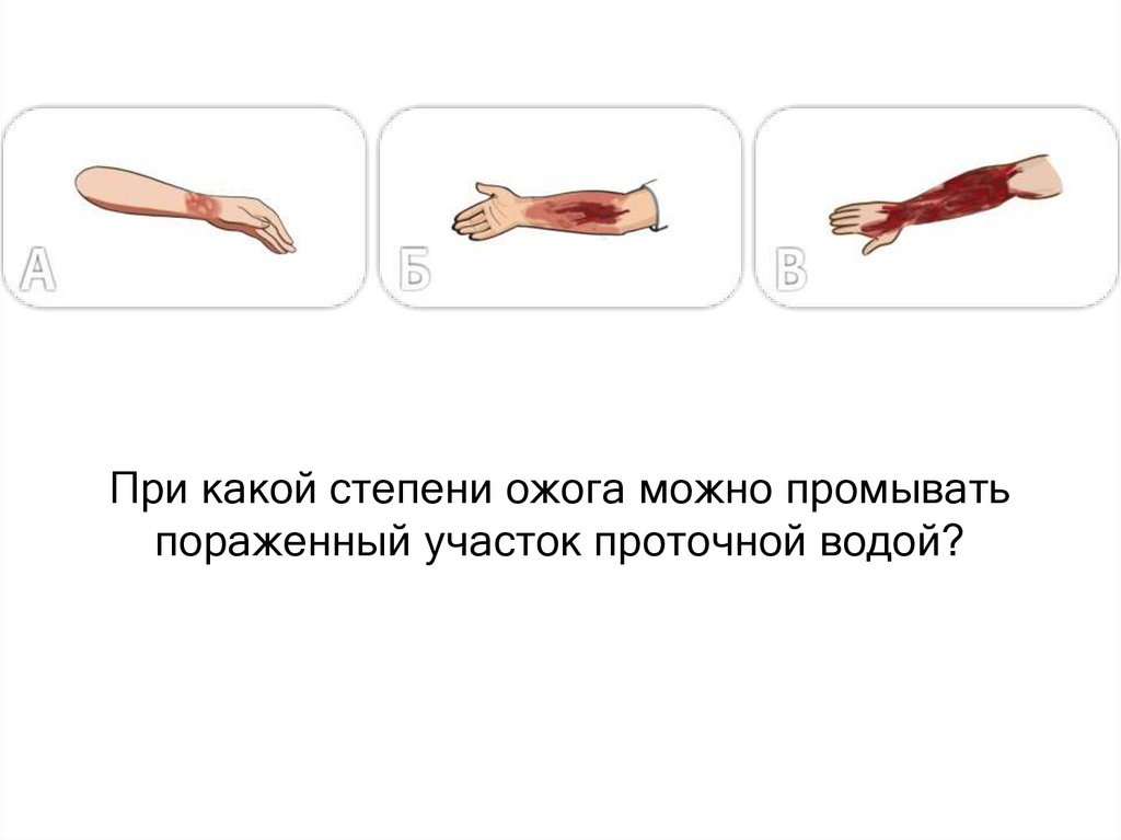 При какой степени ожога можно промыватьпораженный участок проточной водой?
