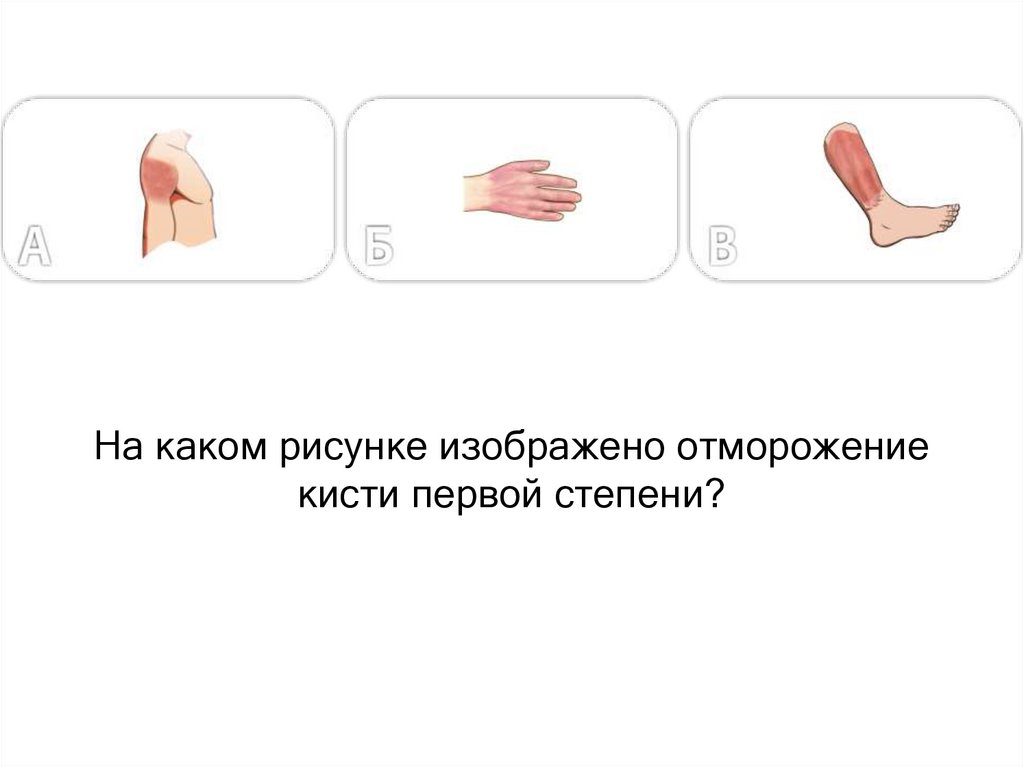 На каком рисунке изображено отморожениекисти первой степени?