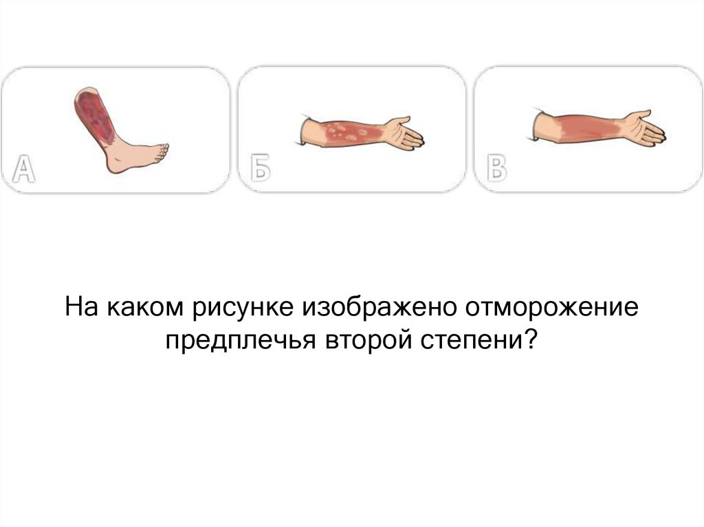 На каком рисунке изображено отморожениепредплечья второй степени?