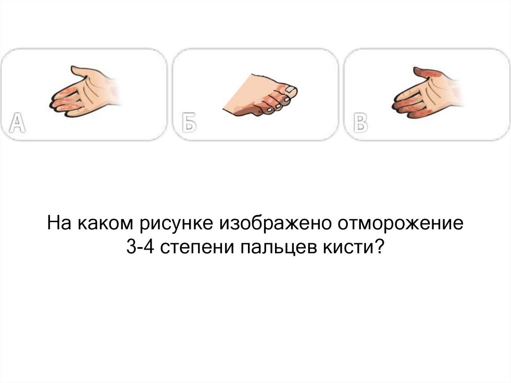 На каком рисунке изображено отморожение3-4 степени пальцев кисти?