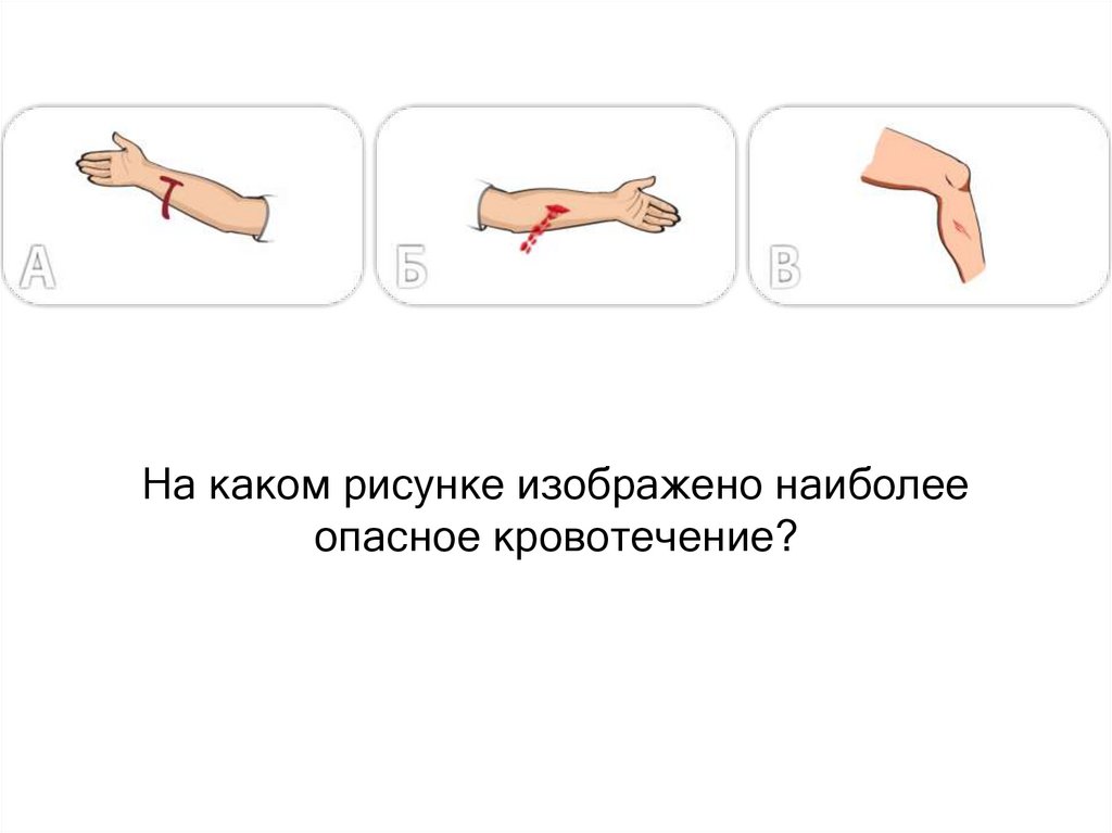 На каком рисунке изображено наиболееопасное кровотечение?