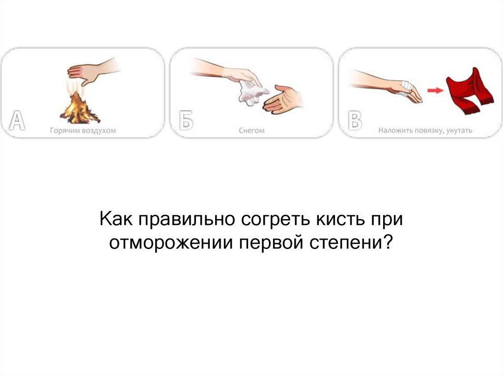 Как правильно согреть кисть приотморожении первой степени?