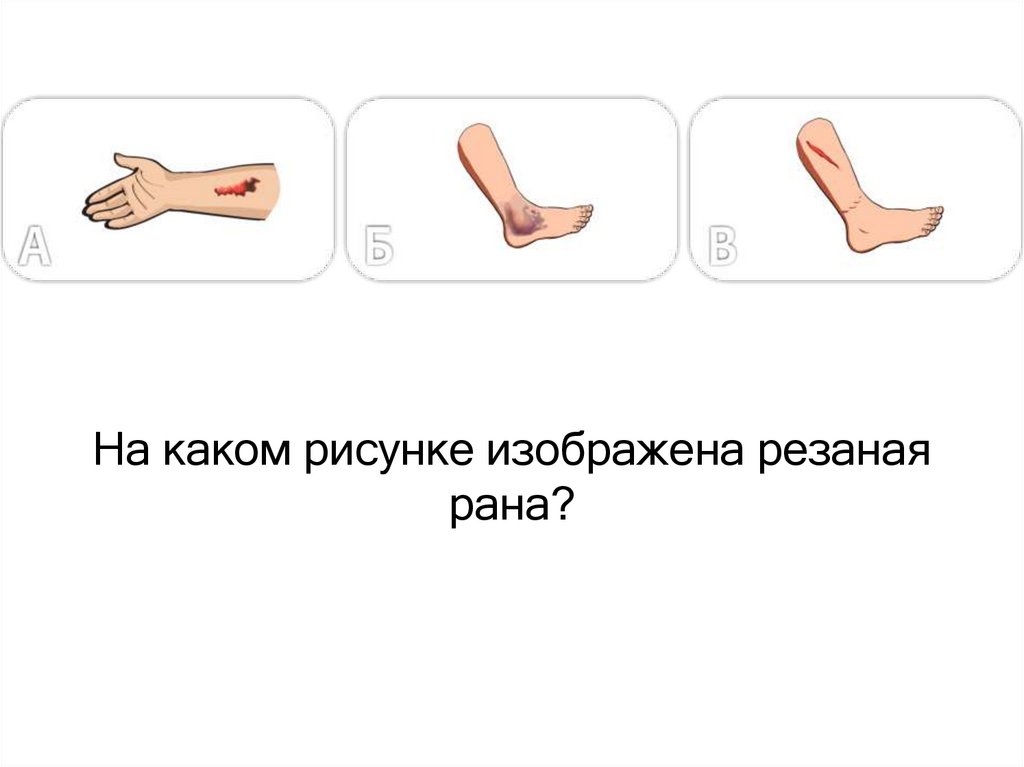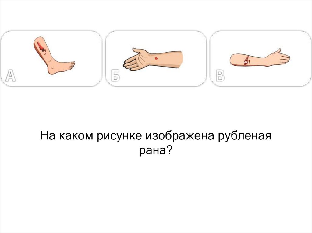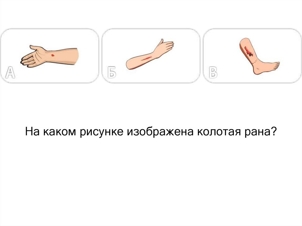 На каком рисунке изображена колотая рана?35. ВОПРОС № 18