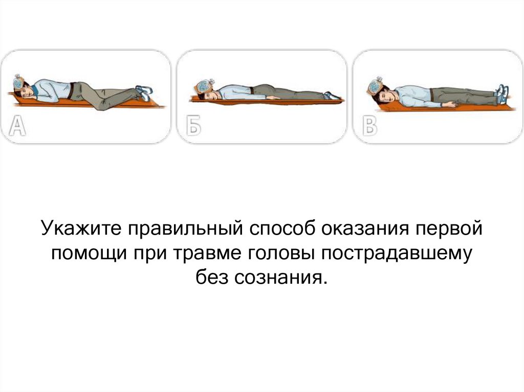 Укажите правильный способ оказания первойпомощи при травме головы пострадавшему