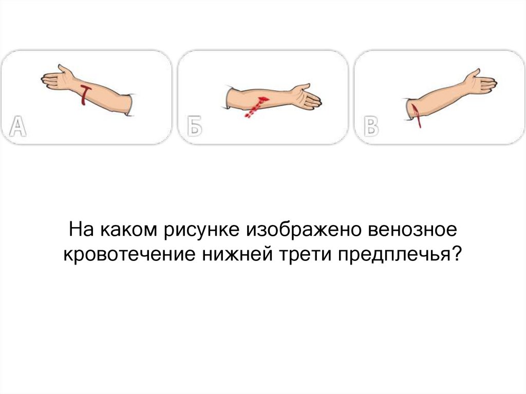 На каком рисунке изображено венозноекровотечение нижней трети предплечья?