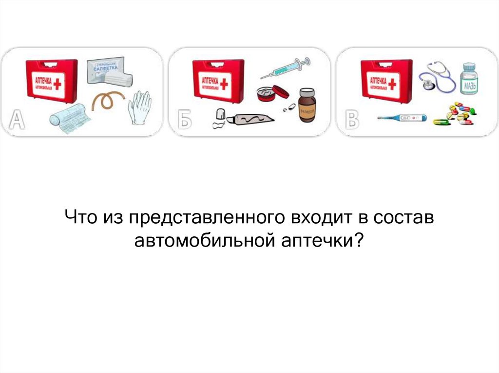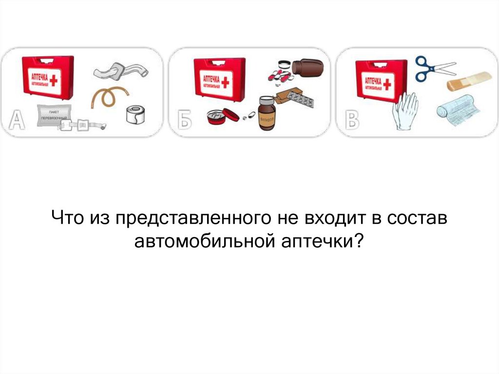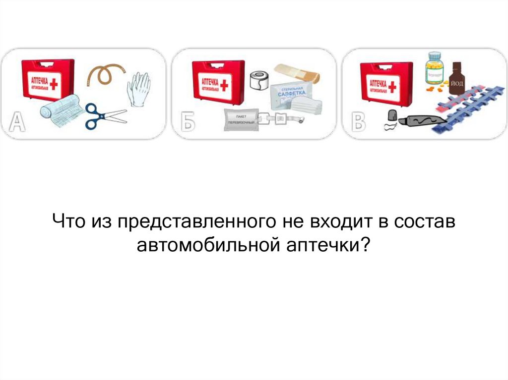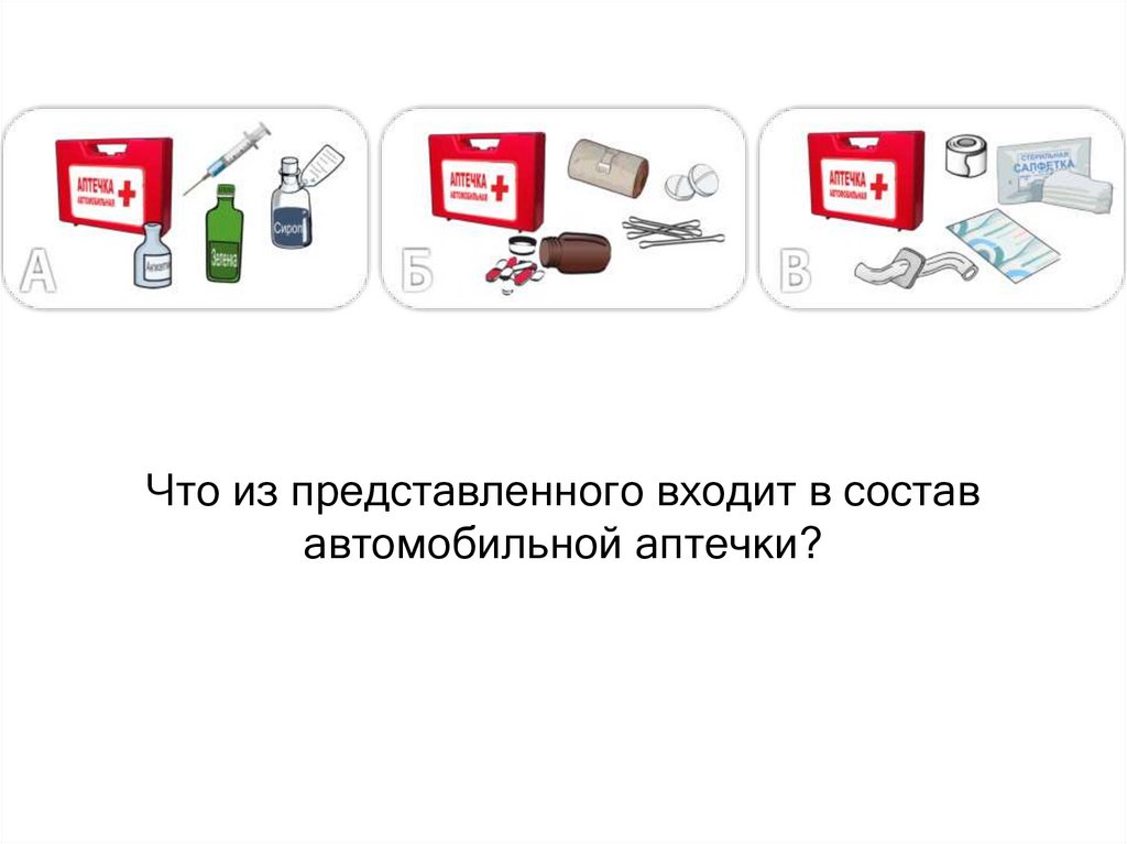 Что из представленного входит в состававтомобильной аптечки?