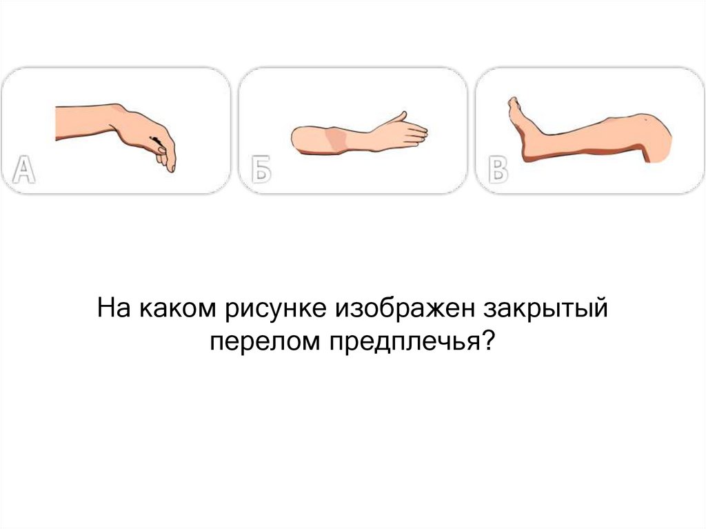 На каком рисунке изображен закрытыйперелом предплечья?