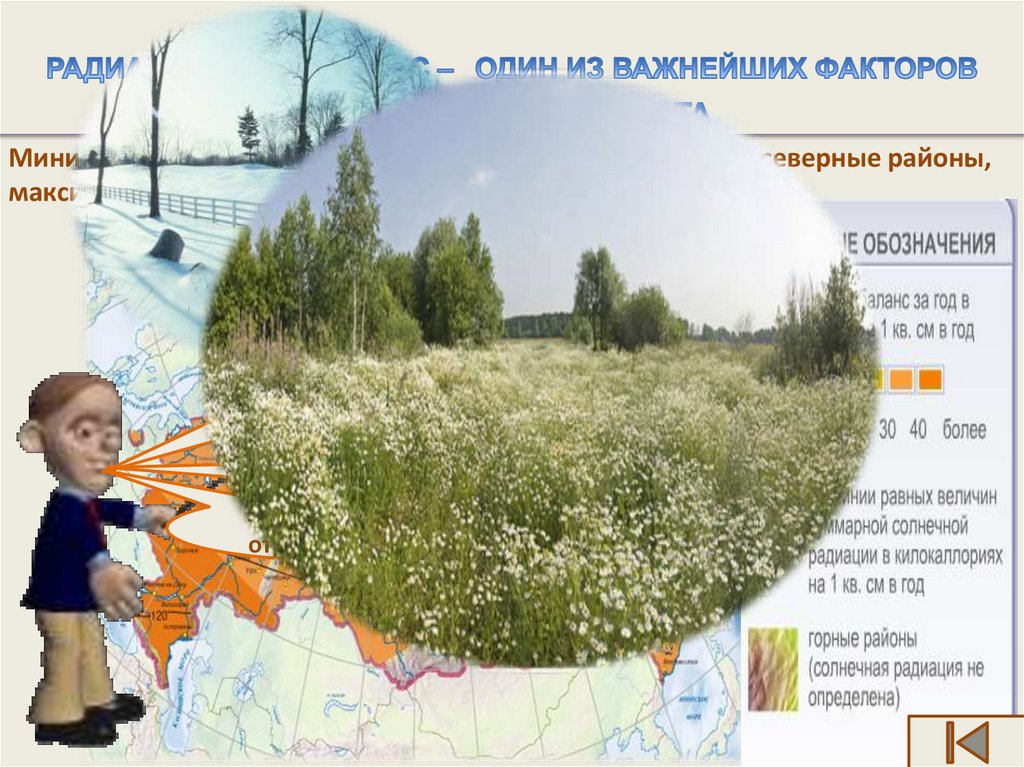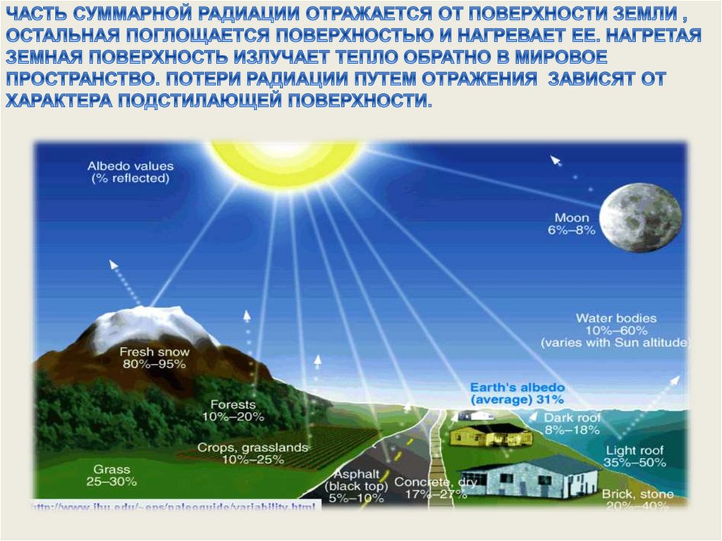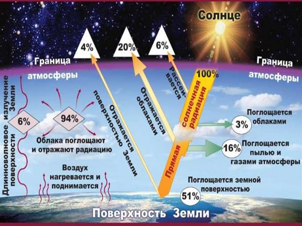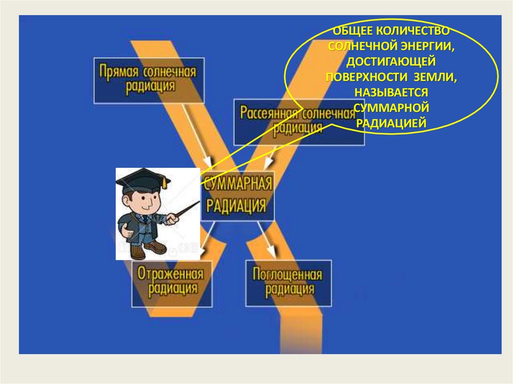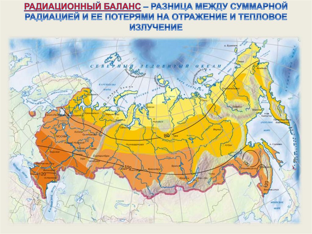 Минимальное количество солнечной радиации поступает в северные районы,максимальное – в южные