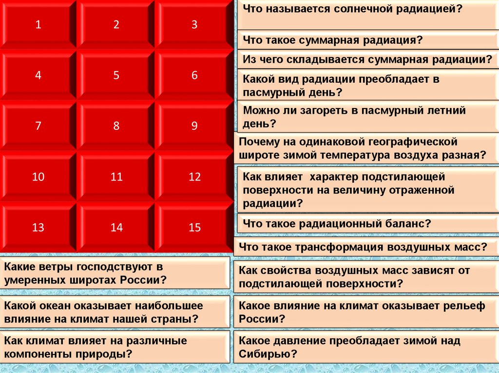5. По географическому положению Россия - северная страна. Географическое положение предопределяет климатические условия