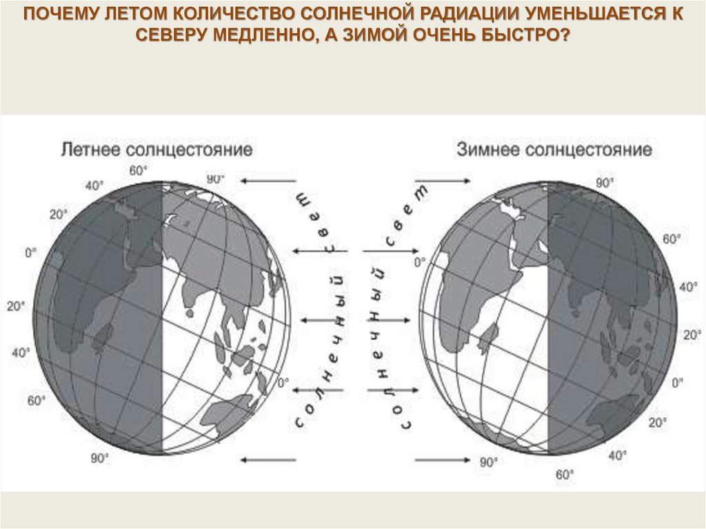 ПОЧЕМУ ЛЕТОМ КОЛИЧЕСТВО СОЛНЕЧНОЙ РАДИАЦИИ УМЕНЬШАЕТСЯ КСЕВЕРУ МЕДЛЕННО, А ЗИМОЙ ОЧЕНЬ БЫСТРО?