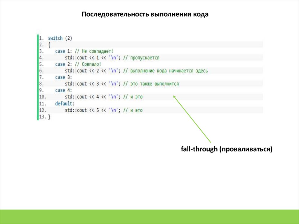 Последовательность выполнения кодаfall-through (проваливаться)