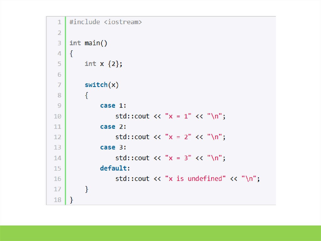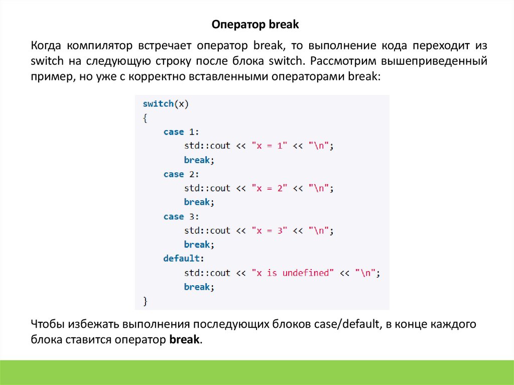 switch на следующую строку после блока switch. Рассмотрим вышеприведенный