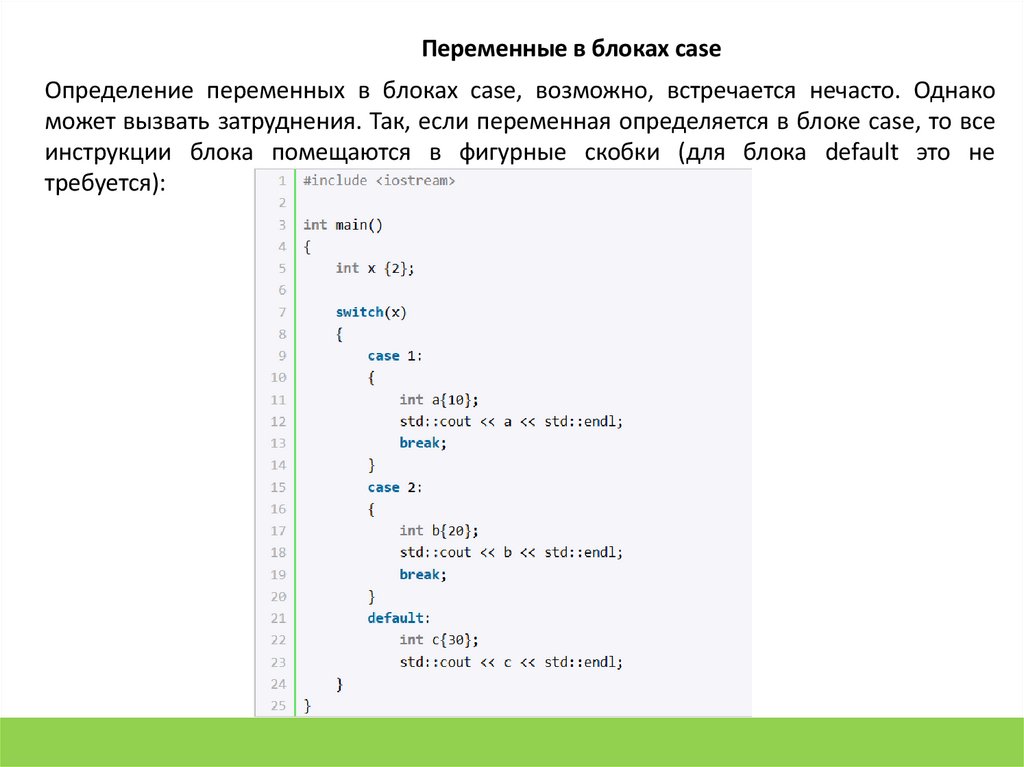 Переменные в блоках caseОпределение переменных в блоках case, возможно, встречается нечасто. Однако