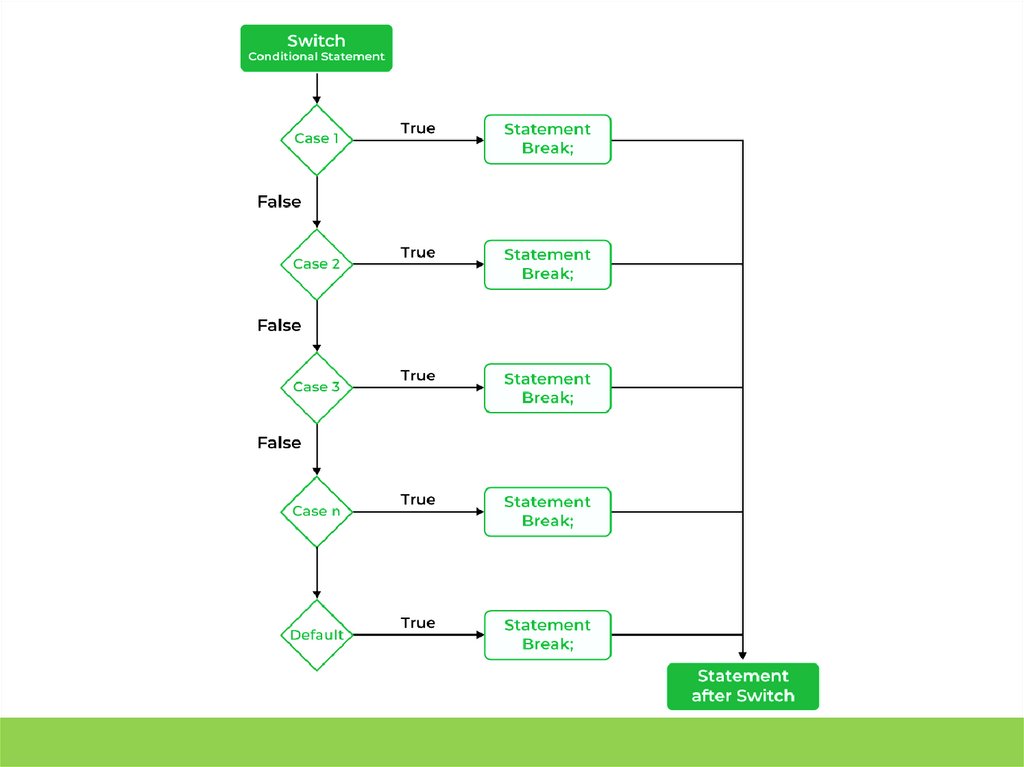 Еще одна странность в switch заключается в том, что вы можетеиспользовать несколько стейтментов под каждым кейсом, не определяя