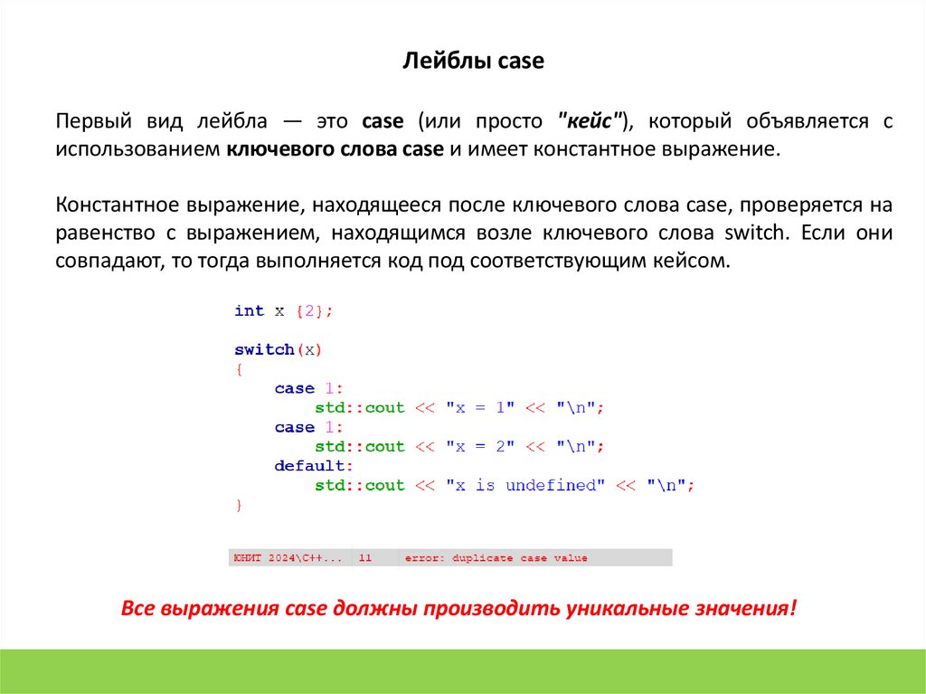 Лейблы caseПервый вид лейбла — это case (или просто "кейс"), который объявляется с