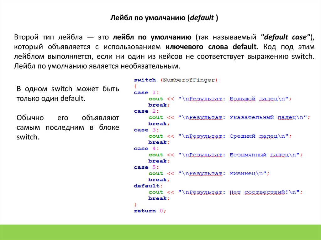 Лейбл по умолчанию (default )Второй тип лейбла — это лейбл по умолчанию (так называемый "default case"),